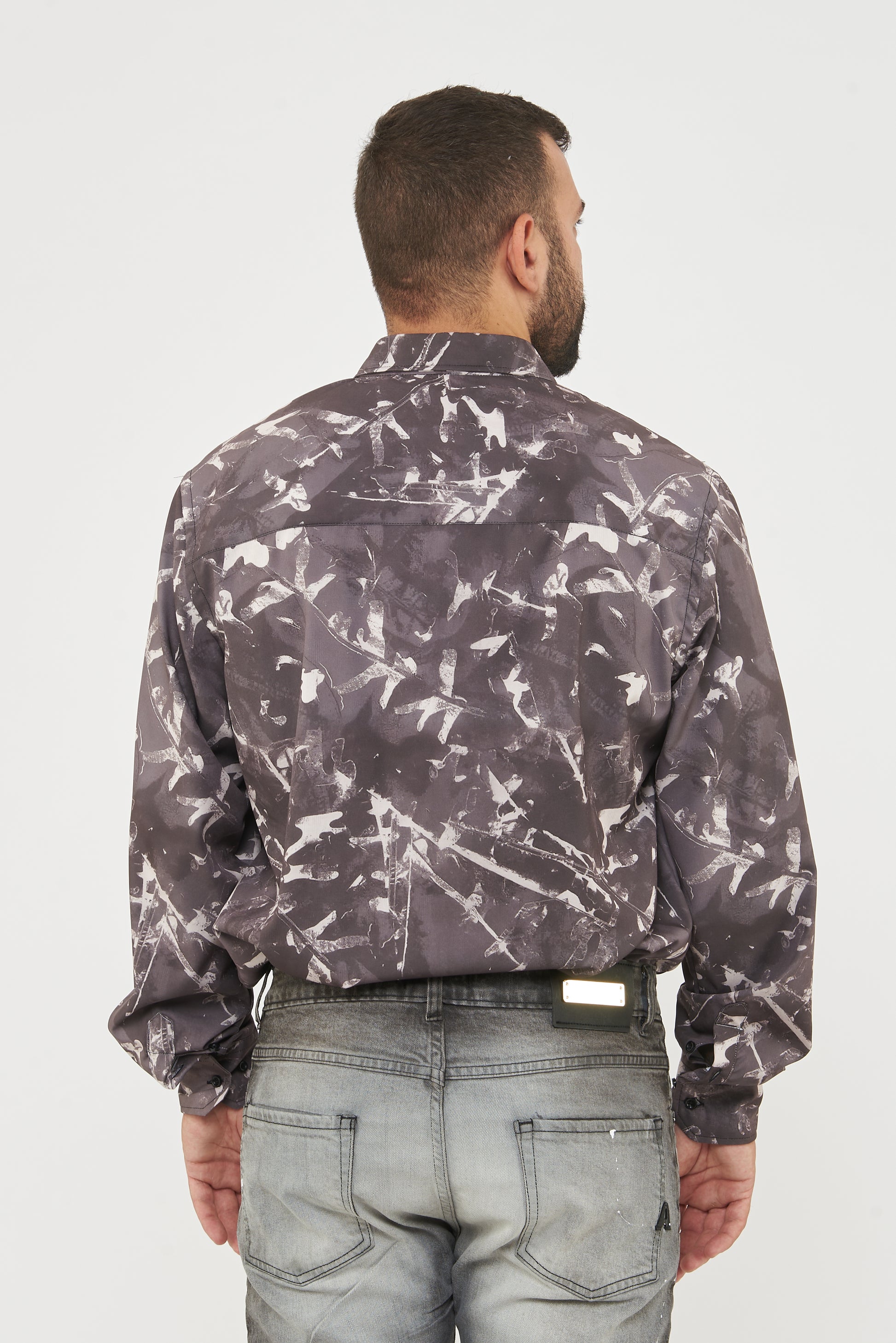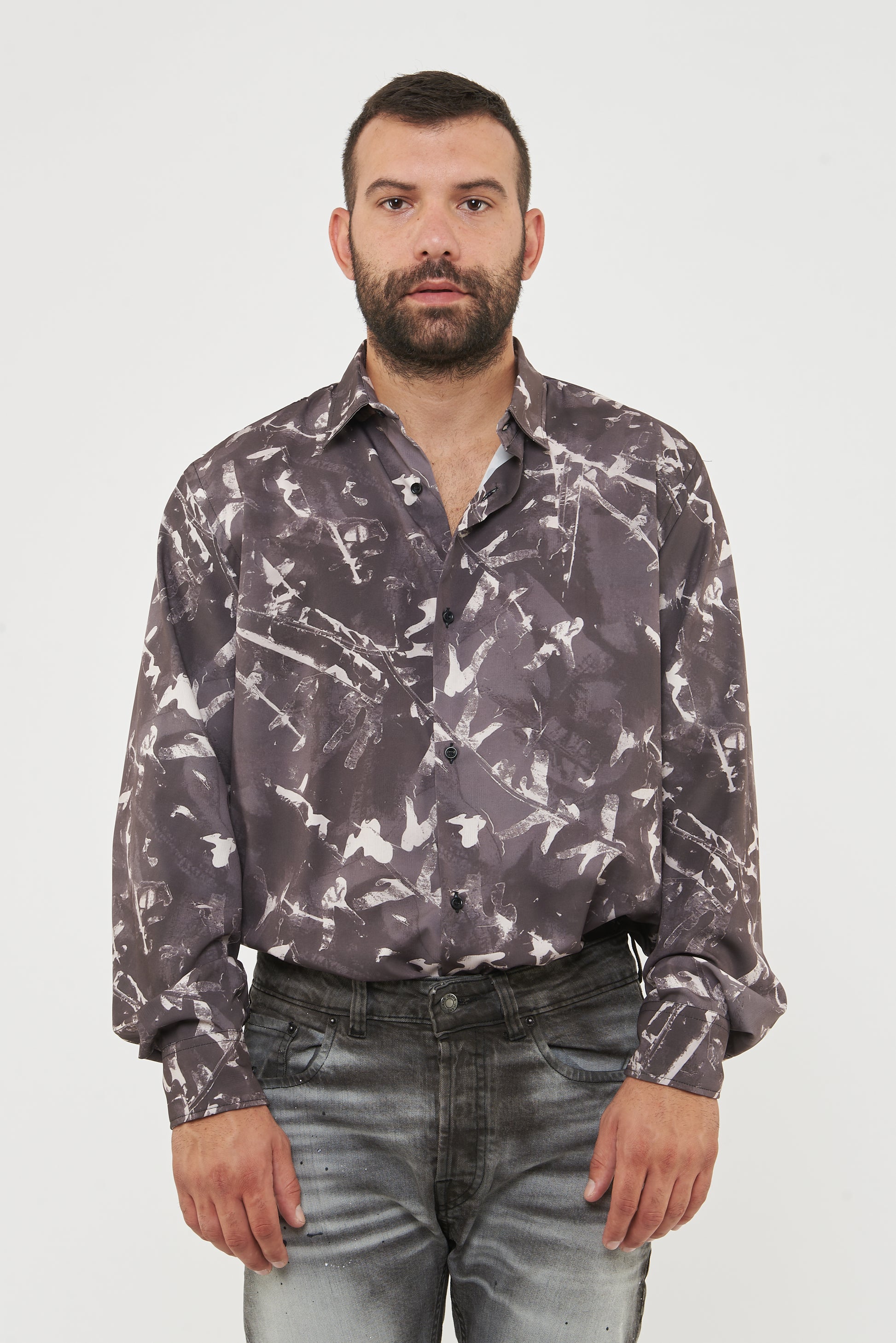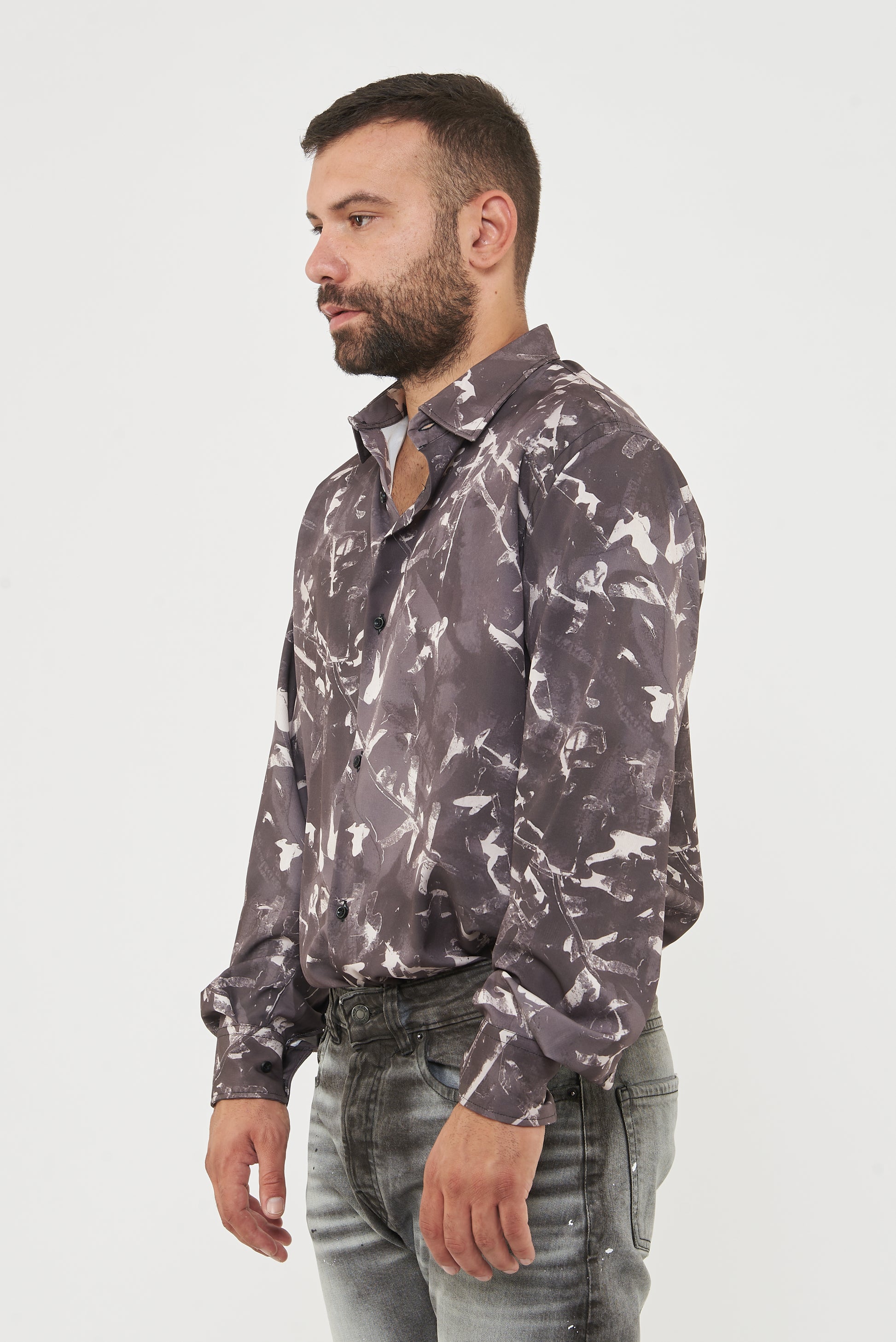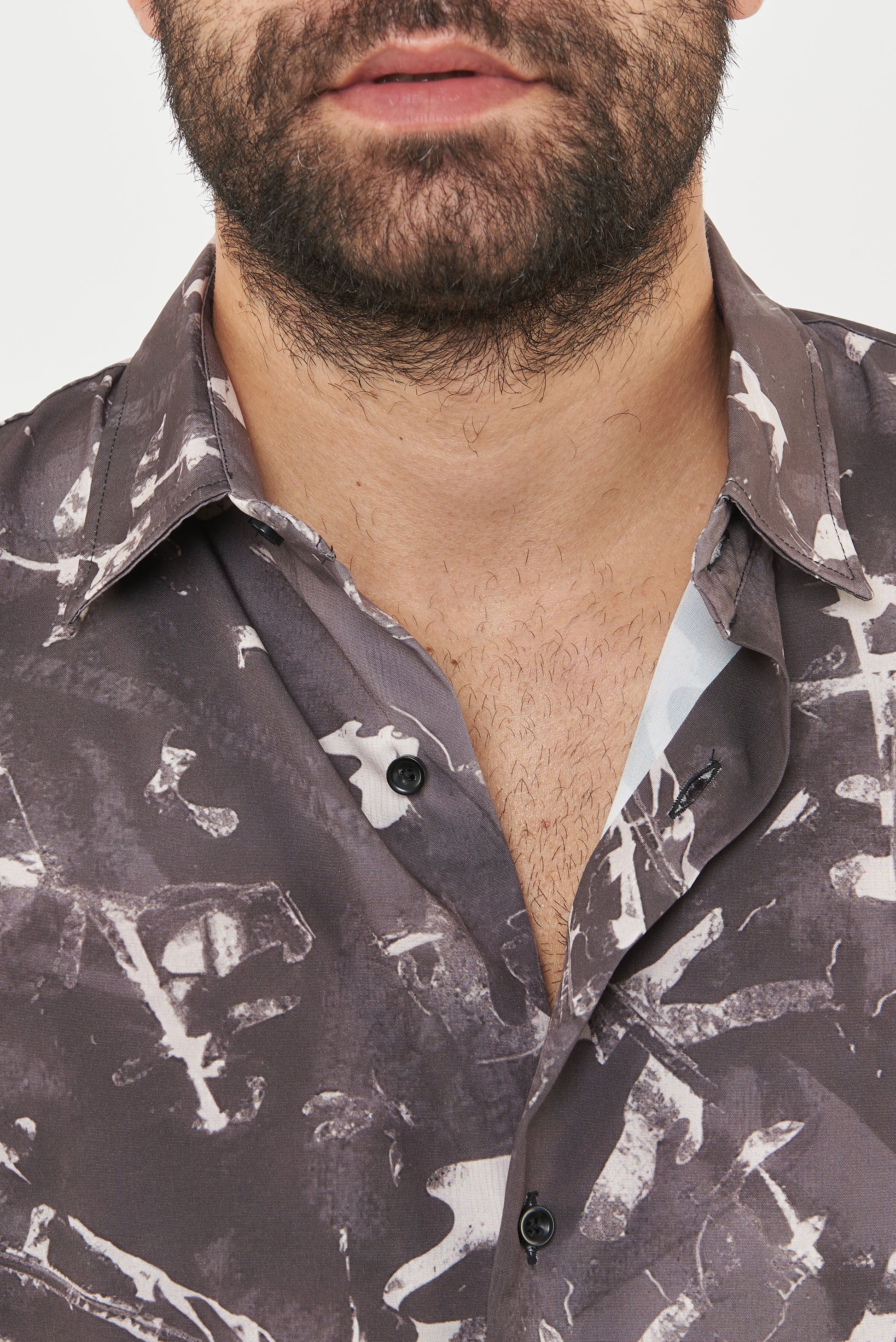 Camicia dal carattere deciso con stampa grafica delle palme astratta nei toni del grigio e del bianco. Realizzata in tessuto viscosa e morbido , offre une vestibilità regolare con colletto classico e chiusura frontale a bottoni. Un capo versatile e contemporaneo , perfetto per aggiungere un tocco di originalità a look casual o per completare outfit più ricercati.
